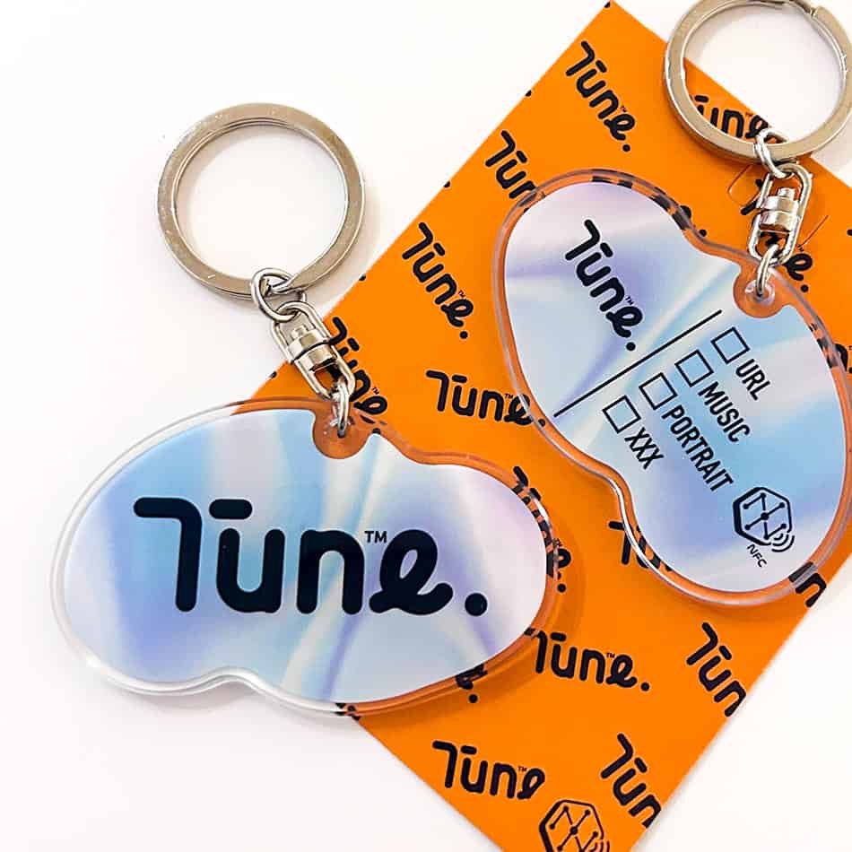 チューンタグにスマホをかざすだけ、新しい音楽体験を。 いつでもどこでもお気に入りの音楽や動画を楽しめる 新感覚のキーホルダーが登場しました! キーホルダーには小型のNFCチップが埋め込まれており、 NFC対応スマートフォンを近づけるだけで、 設定した音楽や動画がSpotify、YouTube、Apple Musicなどのストリーミングサービスより再生されます。 <形状について> ● CDをそのままミニチュア化したCDタイプ。 ● 3枚のアクリルを重ねたディスクタイプ。 ● 上部のディスクが回転するターンテーブルタイプ。 形状も複数あり、お好きな商品からお選びください。 <入稿について> デザインデータとリンク先となるURLを必ず送付ください。 チューンタグは、アーティストグッズやアイドルグッズなど、 幅広いシーンでご好評いただいております。
