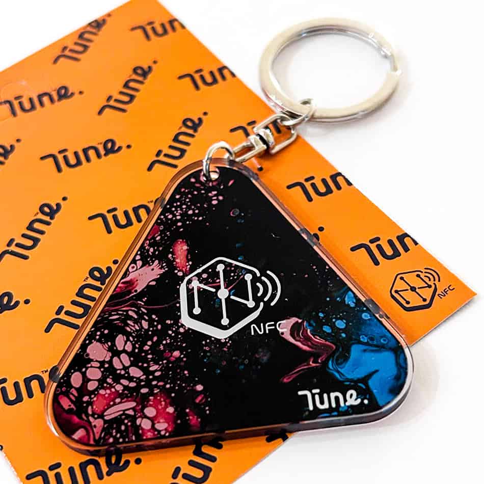 チューンタグにスマホをかざすだけ、新しい音楽体験を。 いつでもどこでもお気に入りの音楽や動画を楽しめる 新感覚のキーホルダーが登場しました! キーホルダーには小型のNFCチップが埋め込まれており、 NFC対応スマートフォンを近づけるだけで、 設定した音楽や動画がSpotify、YouTube、Apple Musicなどのストリーミングサービスより再生されます。 <形状について> ● CDをそのままミニチュア化したCDタイプ。 ● 3枚のアクリルを重ねたディスクタイプ。 ● 上部のディスクが回転するターンテーブルタイプ。 形状も複数あり、お好きな商品からお選びください。 <入稿について> デザインデータとリンク先となるURLを必ず送付ください。 チューンタグは、アーティストグッズやアイドルグッズなど、 幅広いシーンでご好評いただいております。